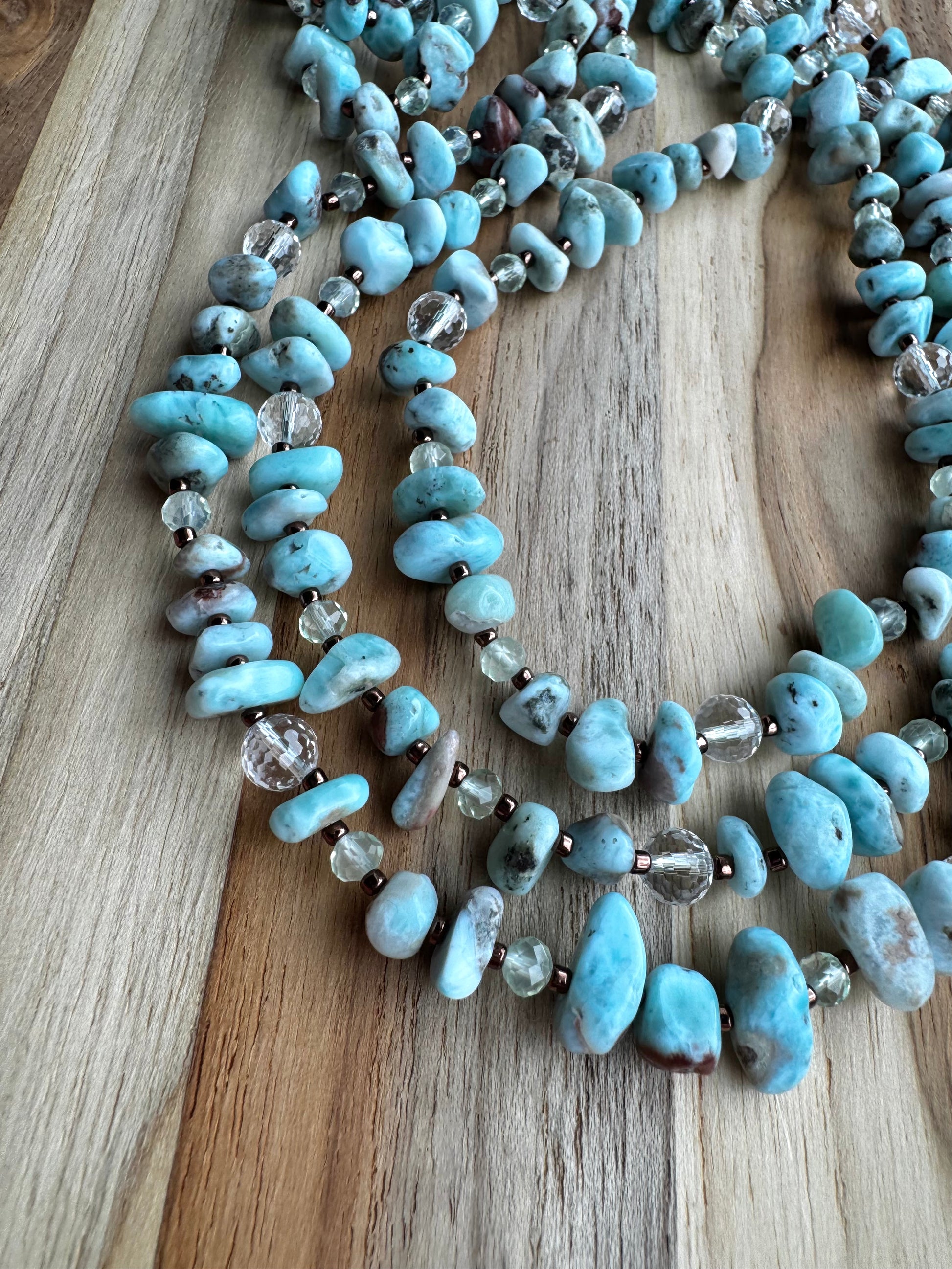 55” Extra Long Wraparound Larimar Necklace with Crystal Beads