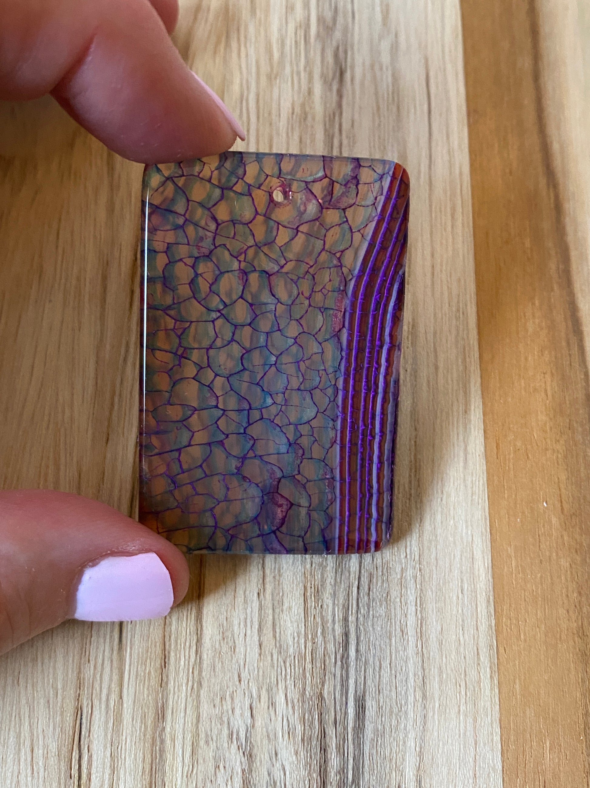 Large oblong shape dragon vein agate pendant bead in shades of purple.