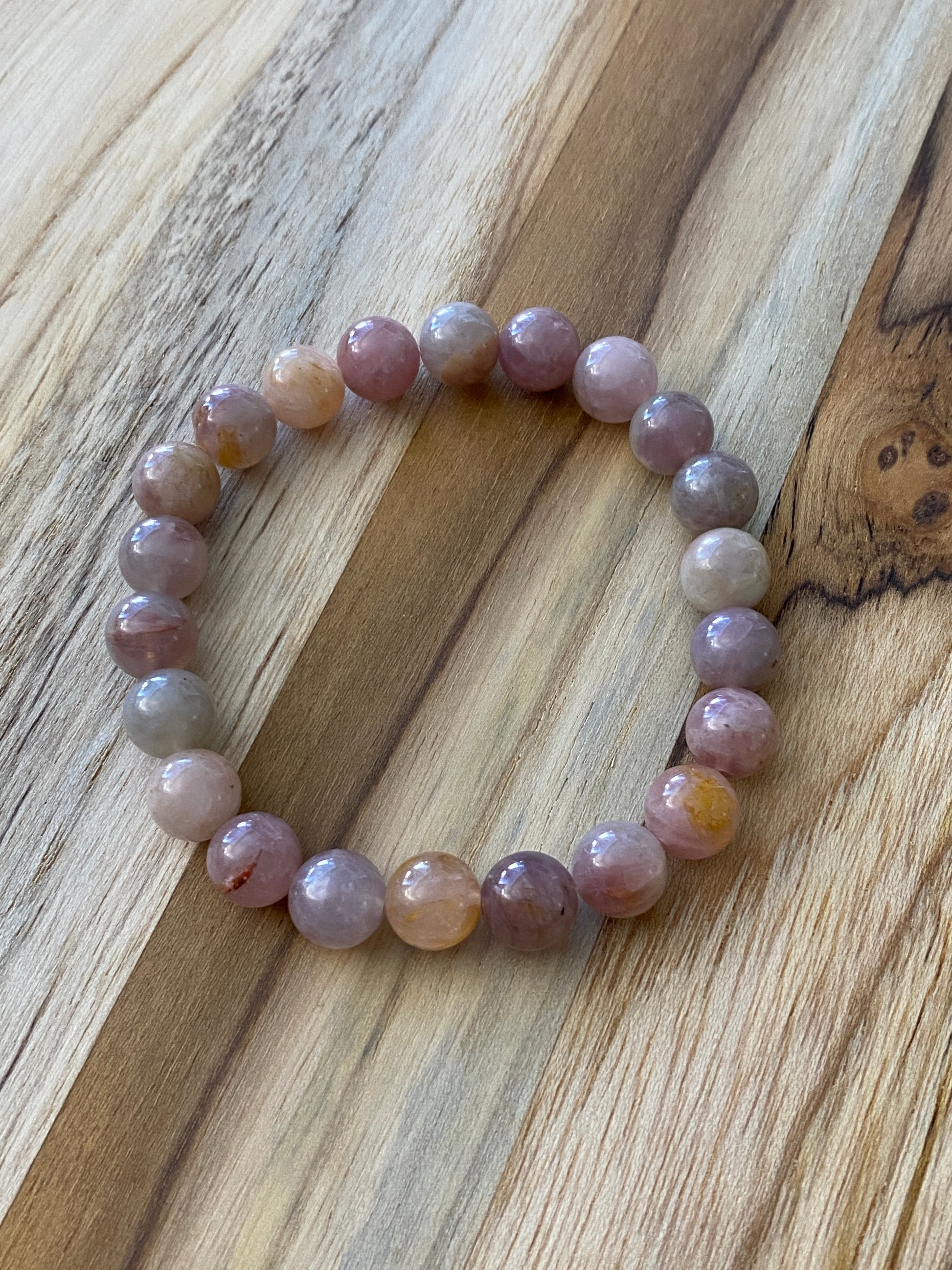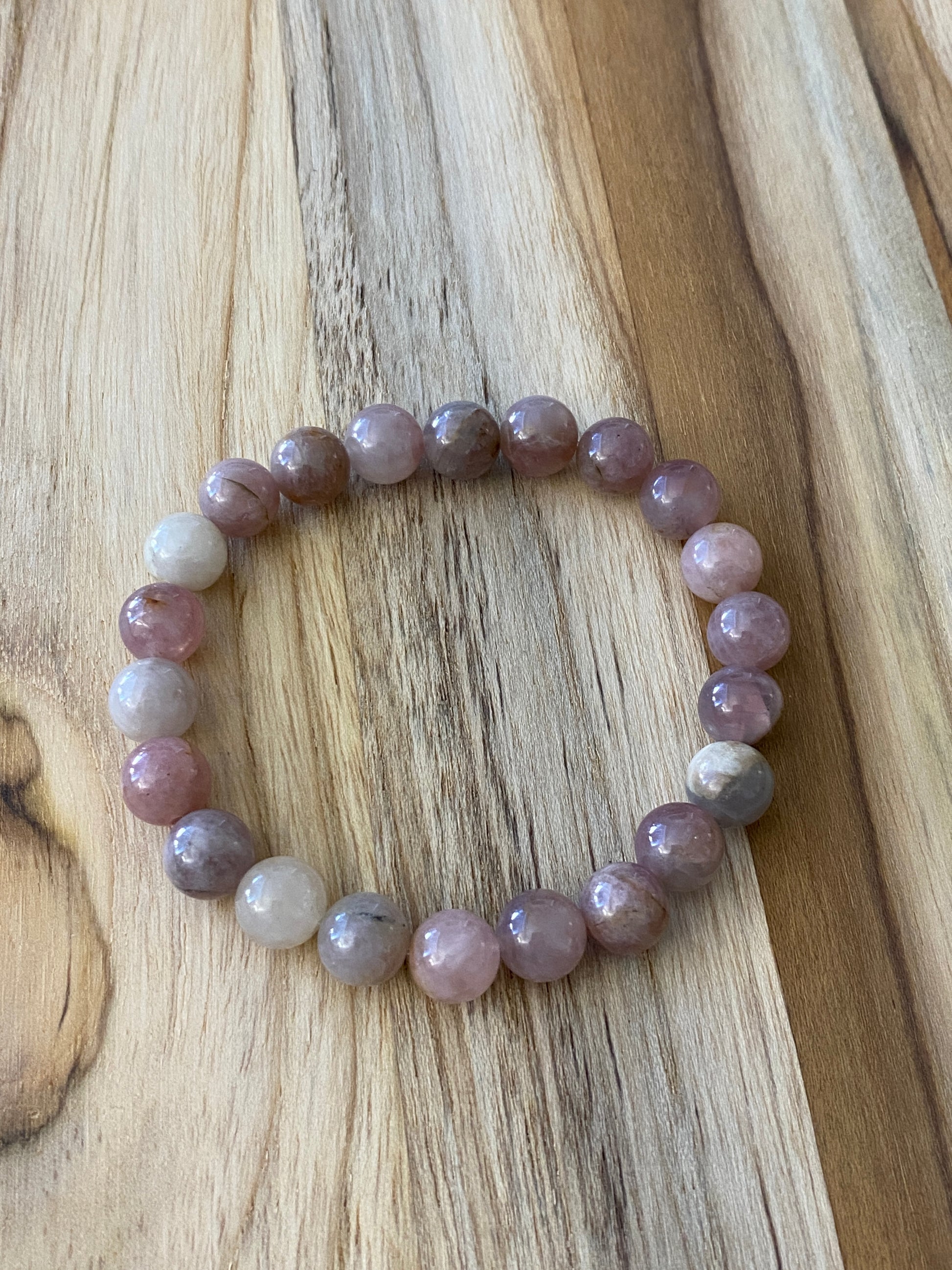 Rose quartz is a stone known for its gentle, loving energy. It is believed to help promote feelings of compassion, self-love, and forgiveness, making it a popular choice for those seeking emotional healing and inner peace. The soft pink & mauve hues of the stone is calming and soothing to the eye, and its smooth surface and rounded shape give the bracelet a comforting, tactile feel.