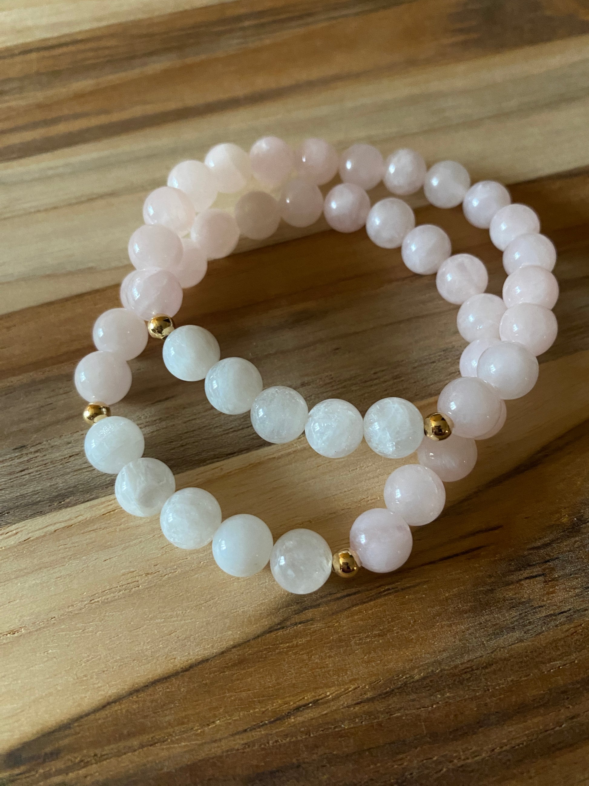 My Rainbow Moonstone and Madagascar Rose Quartz Stretch Bracelet with Gold Filled Accent Beads is a beautiful and versatile piece of jewelry that combines two of the most popular gemstones in the world - moonstone and rose quartz. They are made with 8mm gemstones and 4mm gold filled beads.