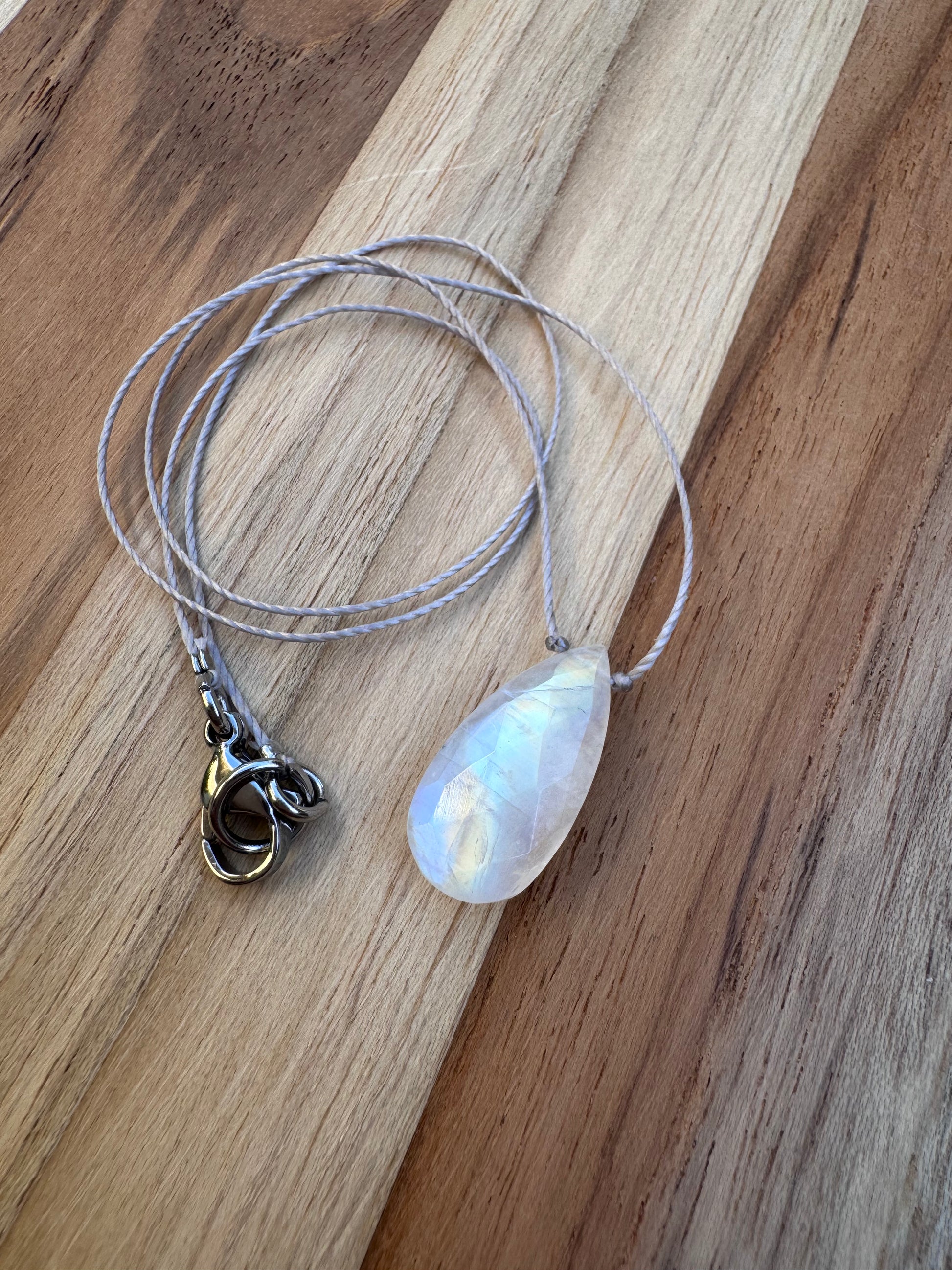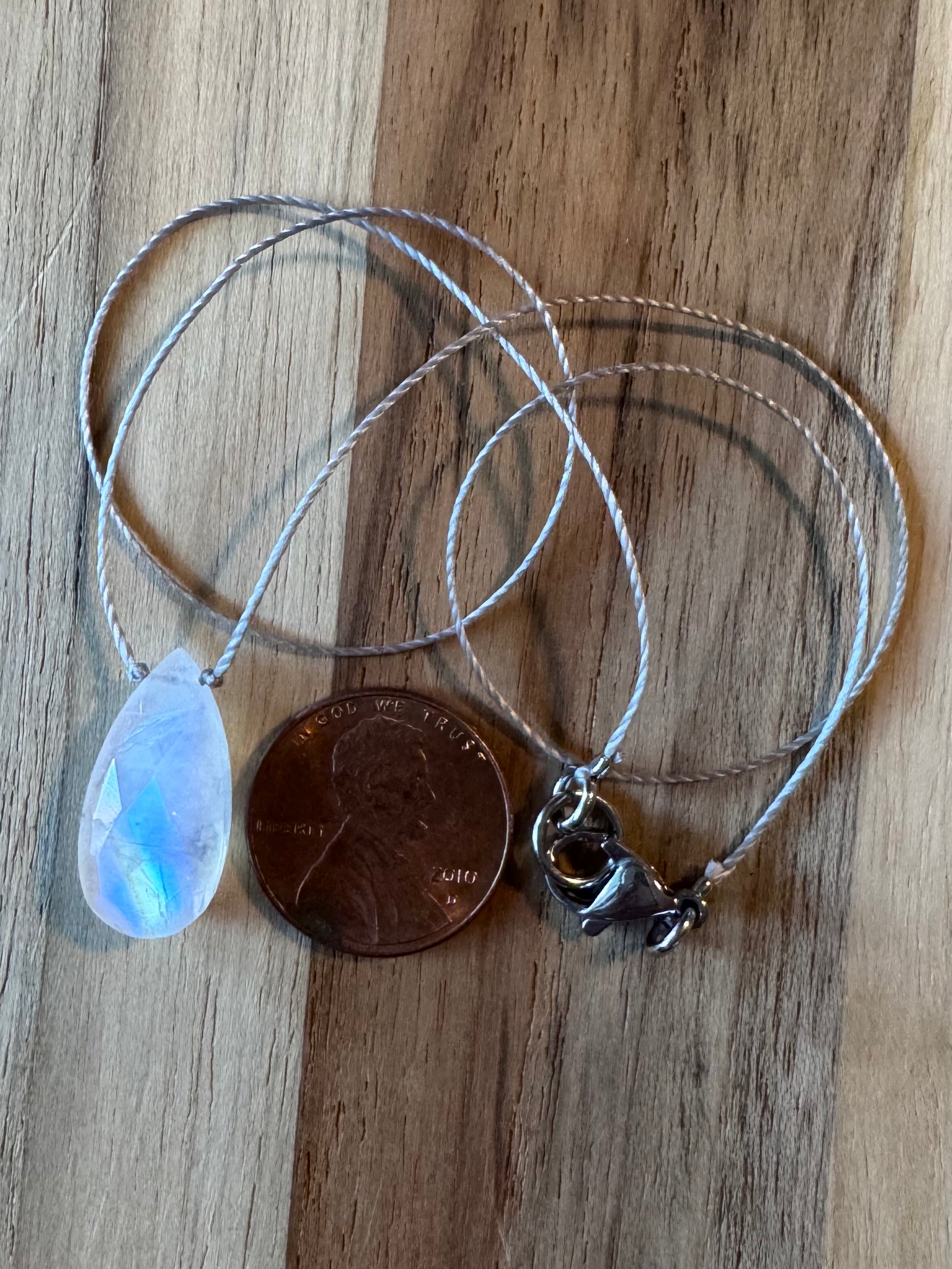 Moonstone Minimalist Floating Pendant Necklace ~ Stainless Steel Clasp