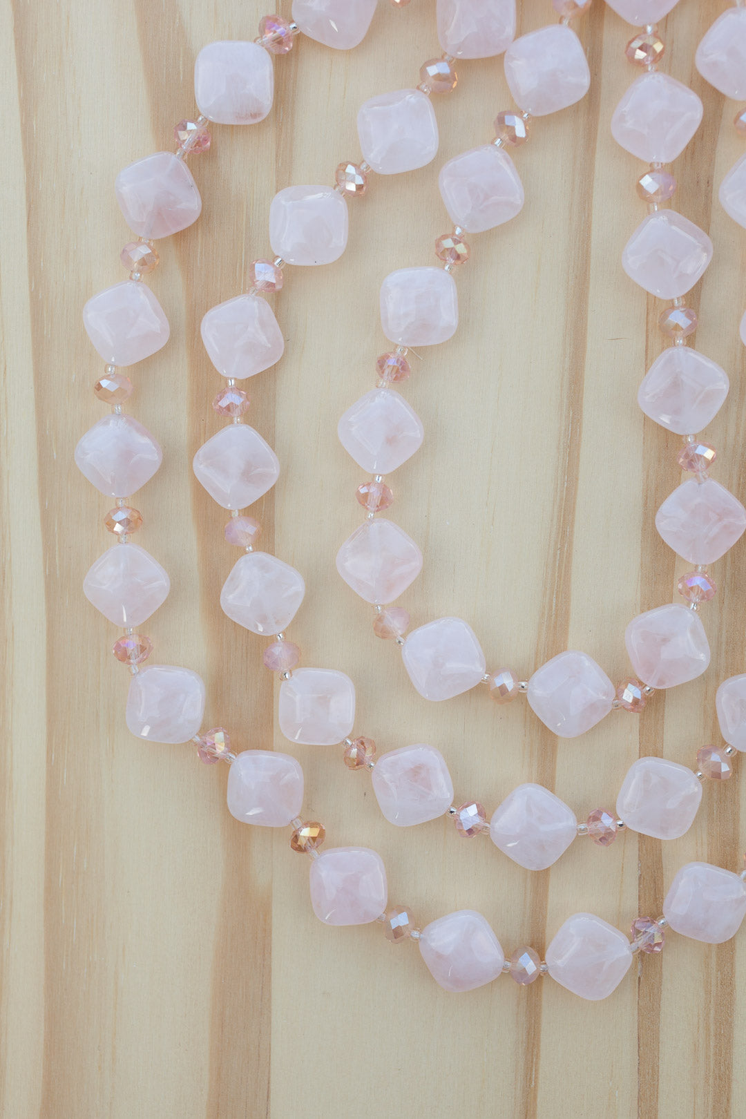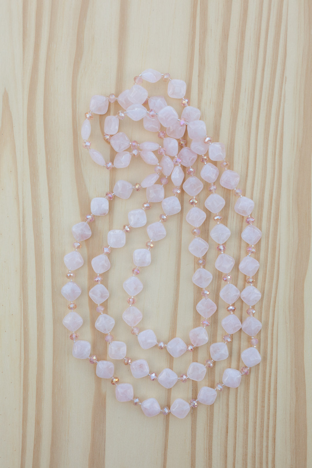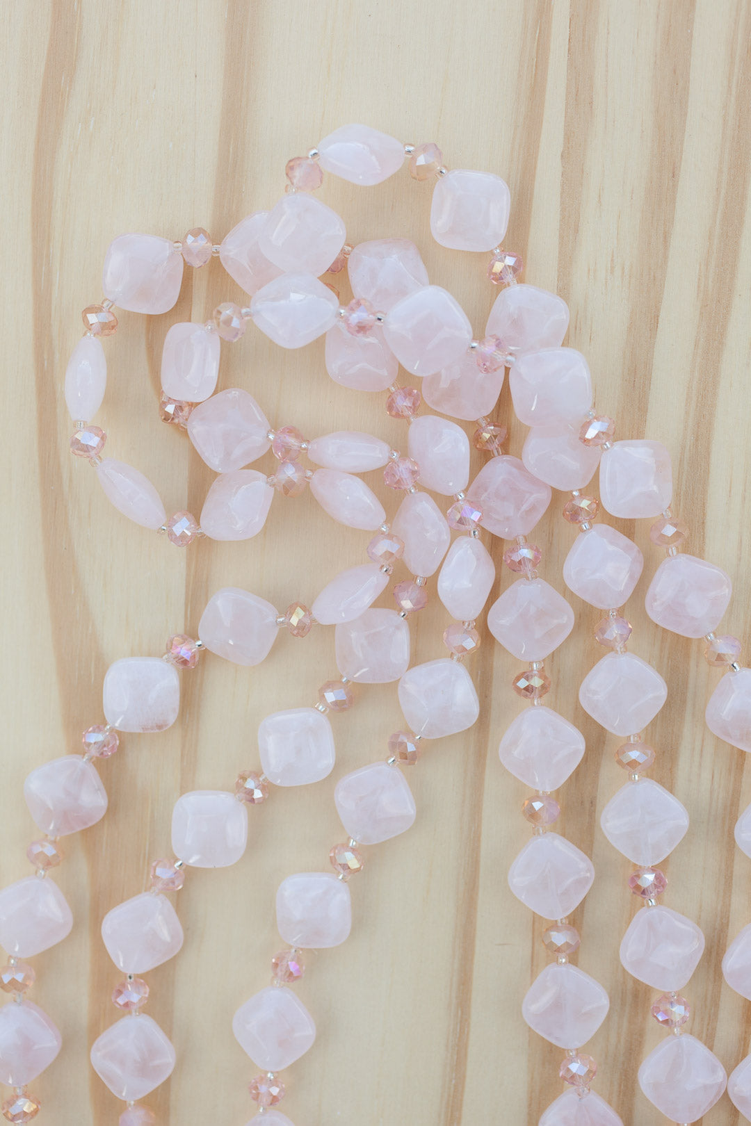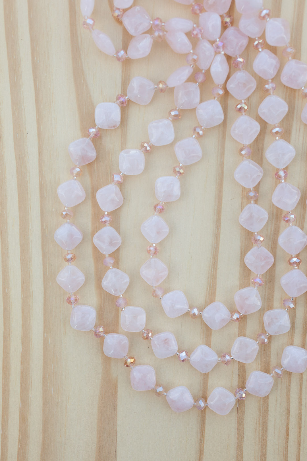 60" Extra Long Beaded Rose Quartz & Crystal Necklace
