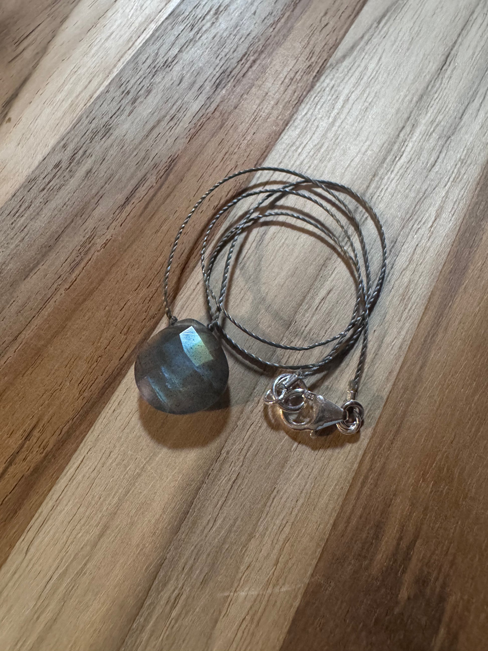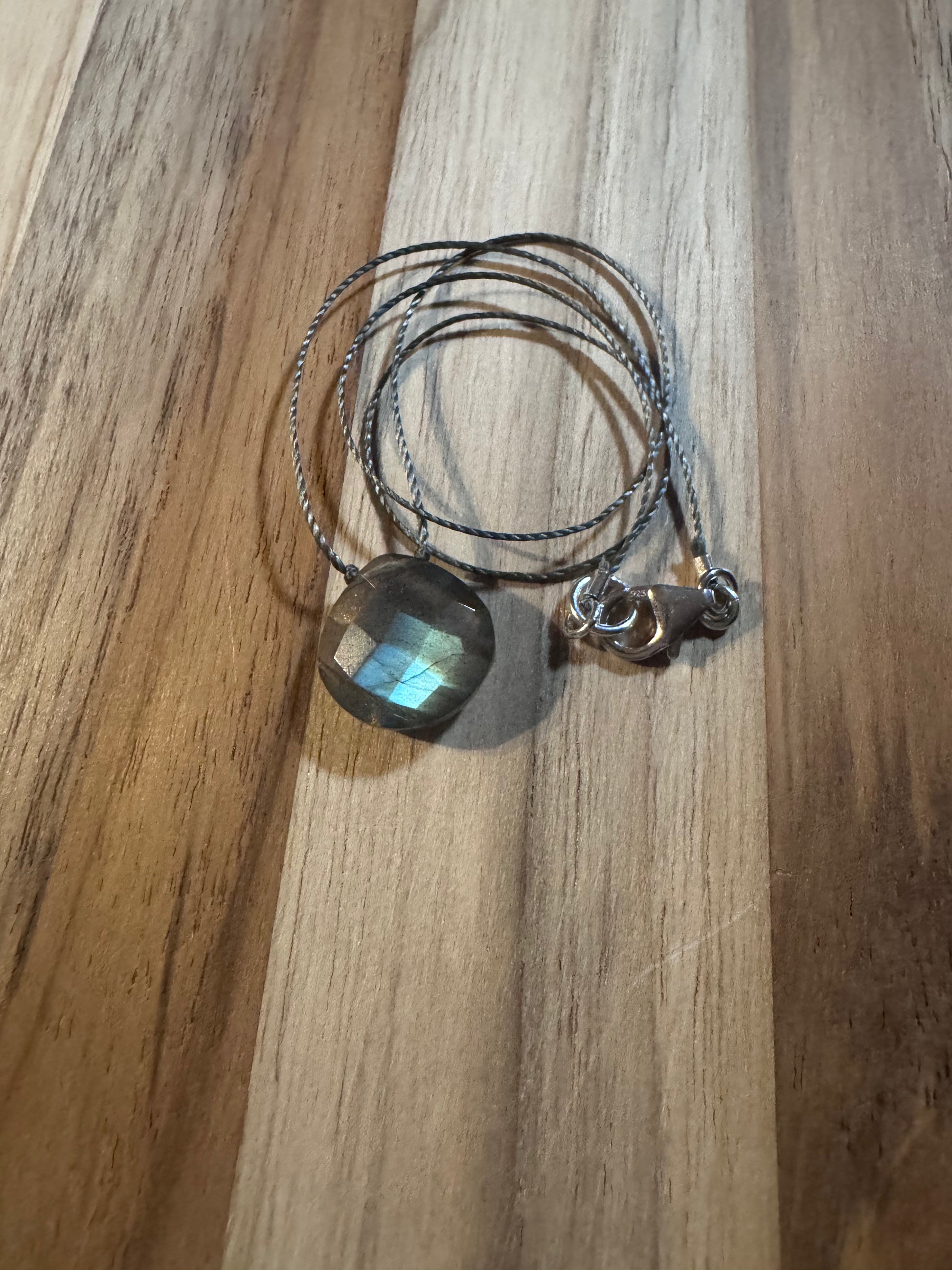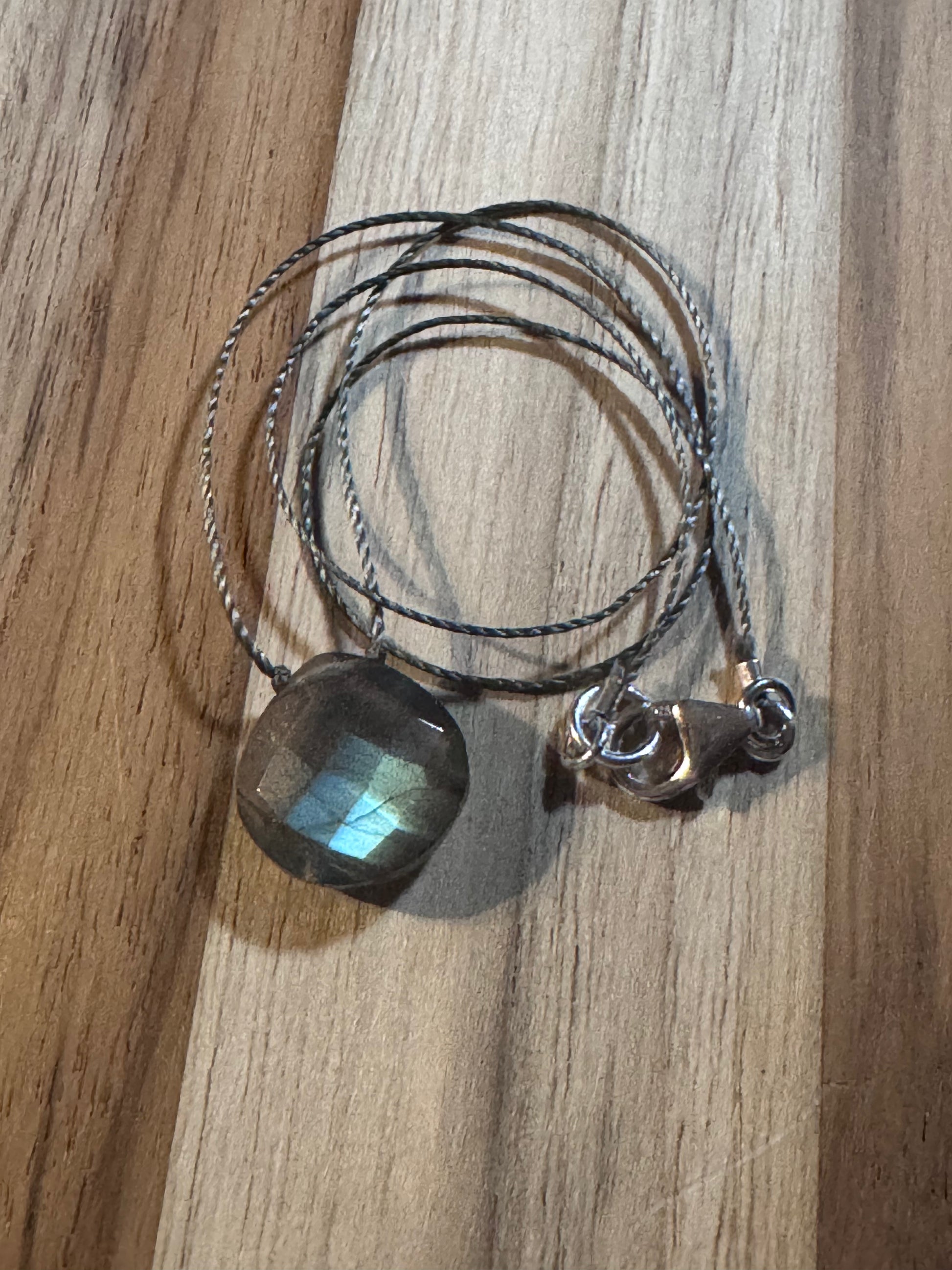 Dainty Faceted Blue Flash Labradorite Floating Minimalist Pendant Necklace ~ Sterling Clasp