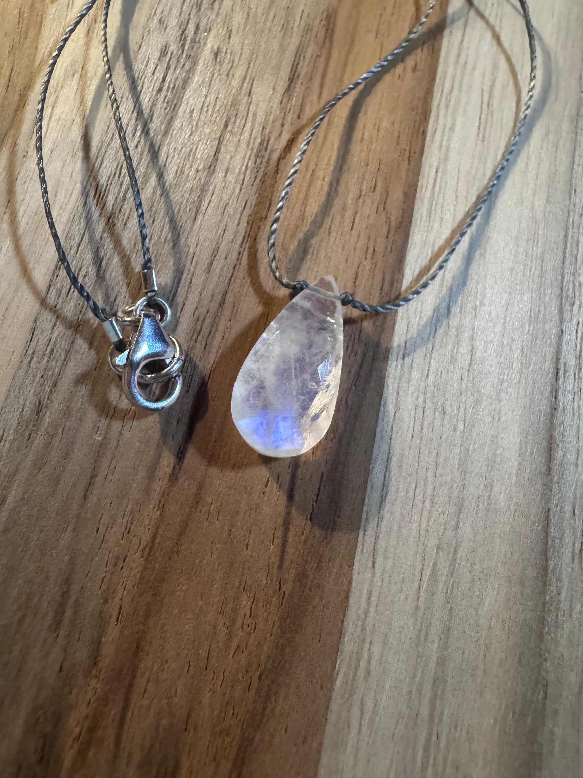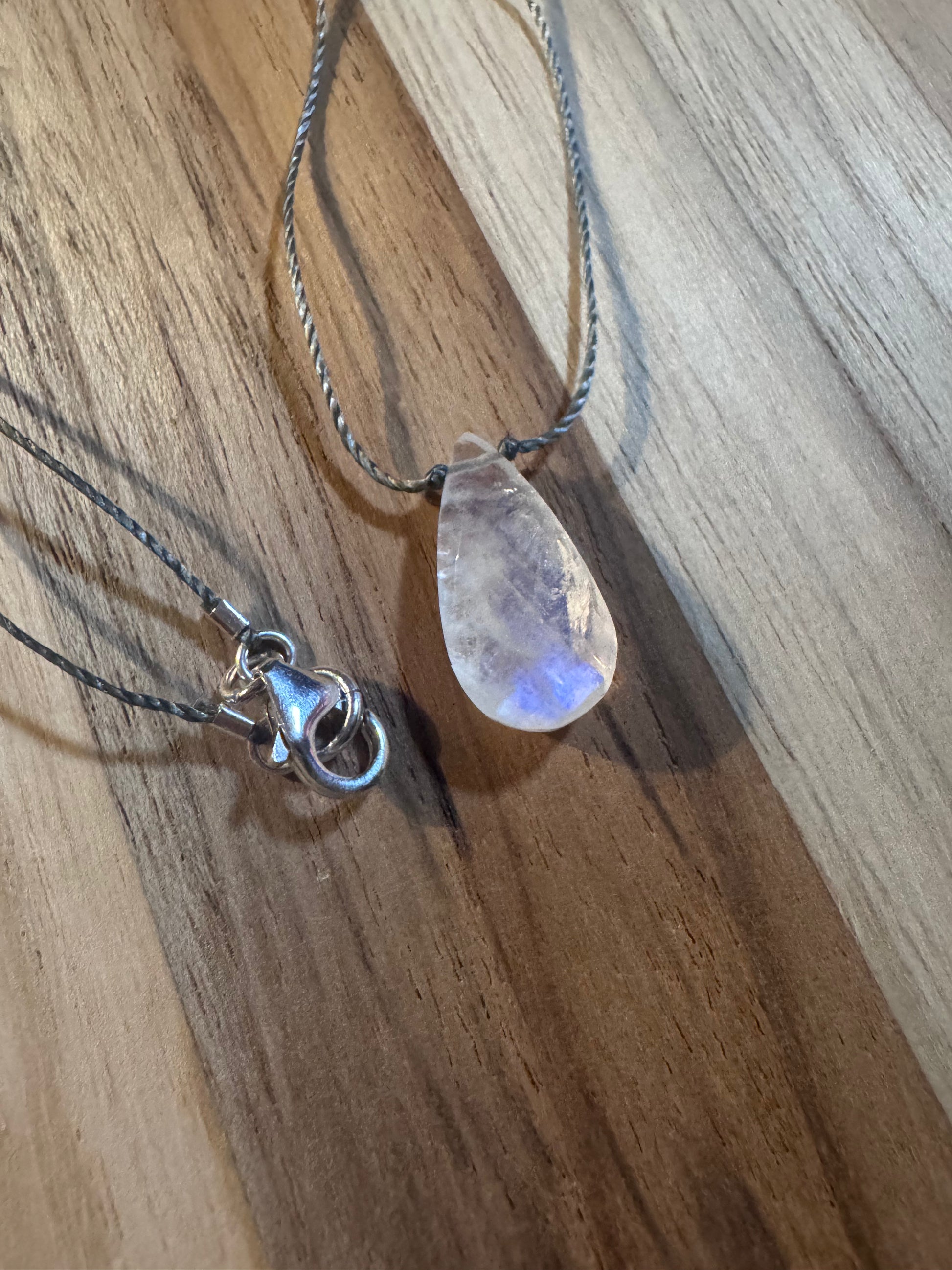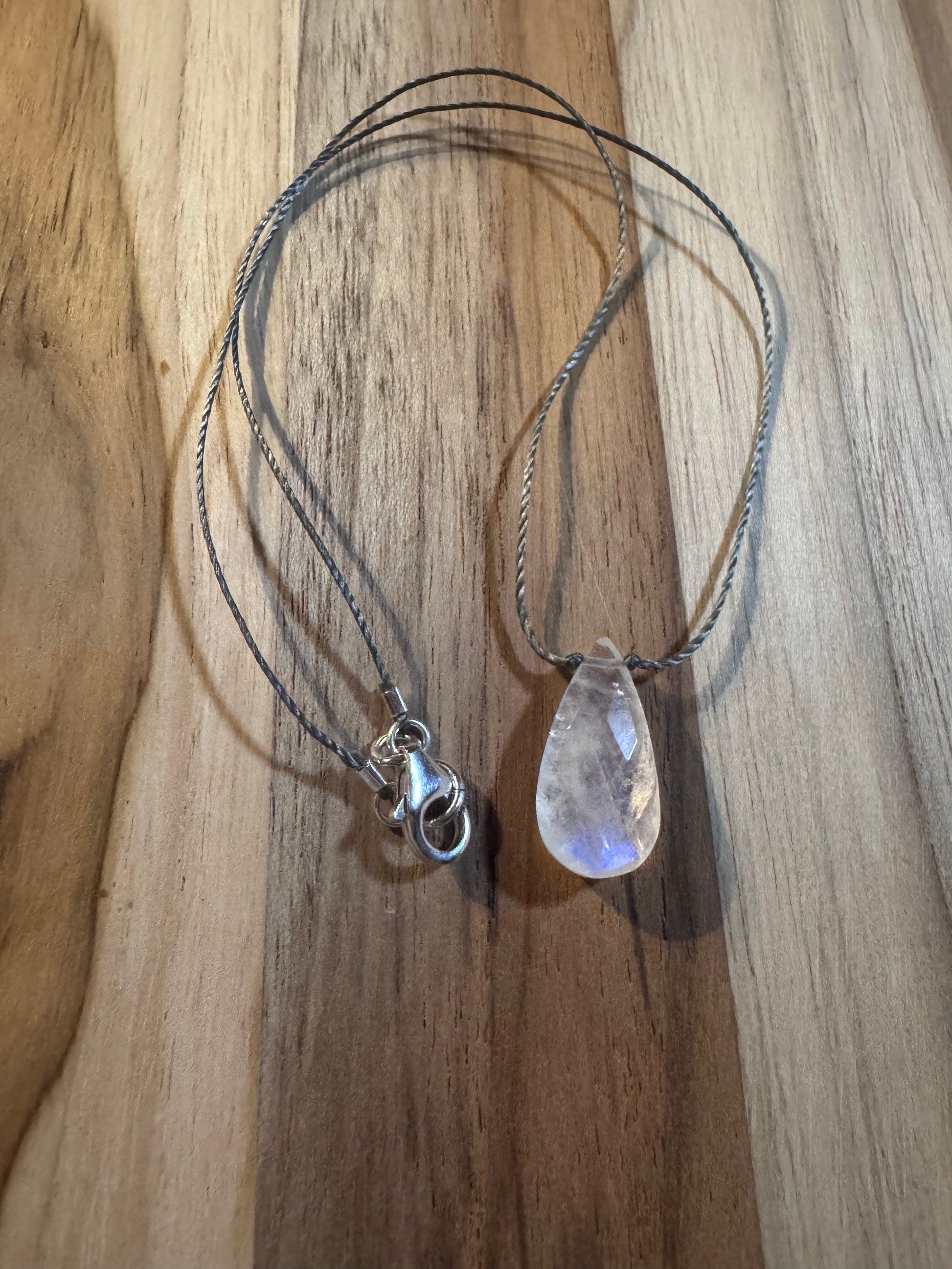 Dainty Faceted Rainbow Moonstone Floating Minimalist Necklace ~ Sterling Clasp