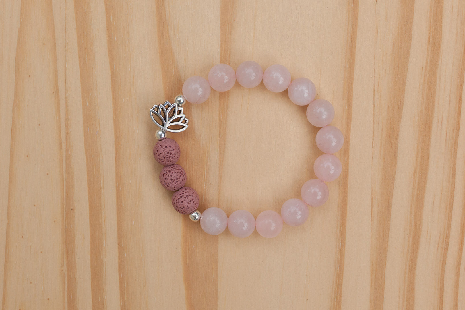 Take your aromatherapy oils with you wherever you go with this trendy rose quartz and pink lava stone stretchy bracelet.