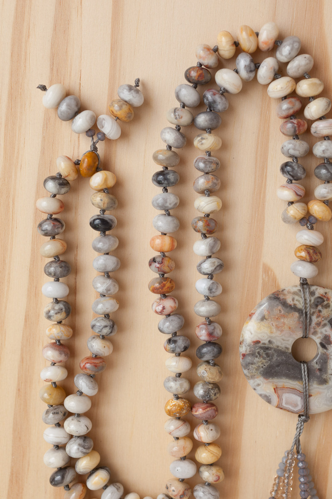 28" Long Crazy Lace Agate Donut Necklace with Agate Rondelle Beads