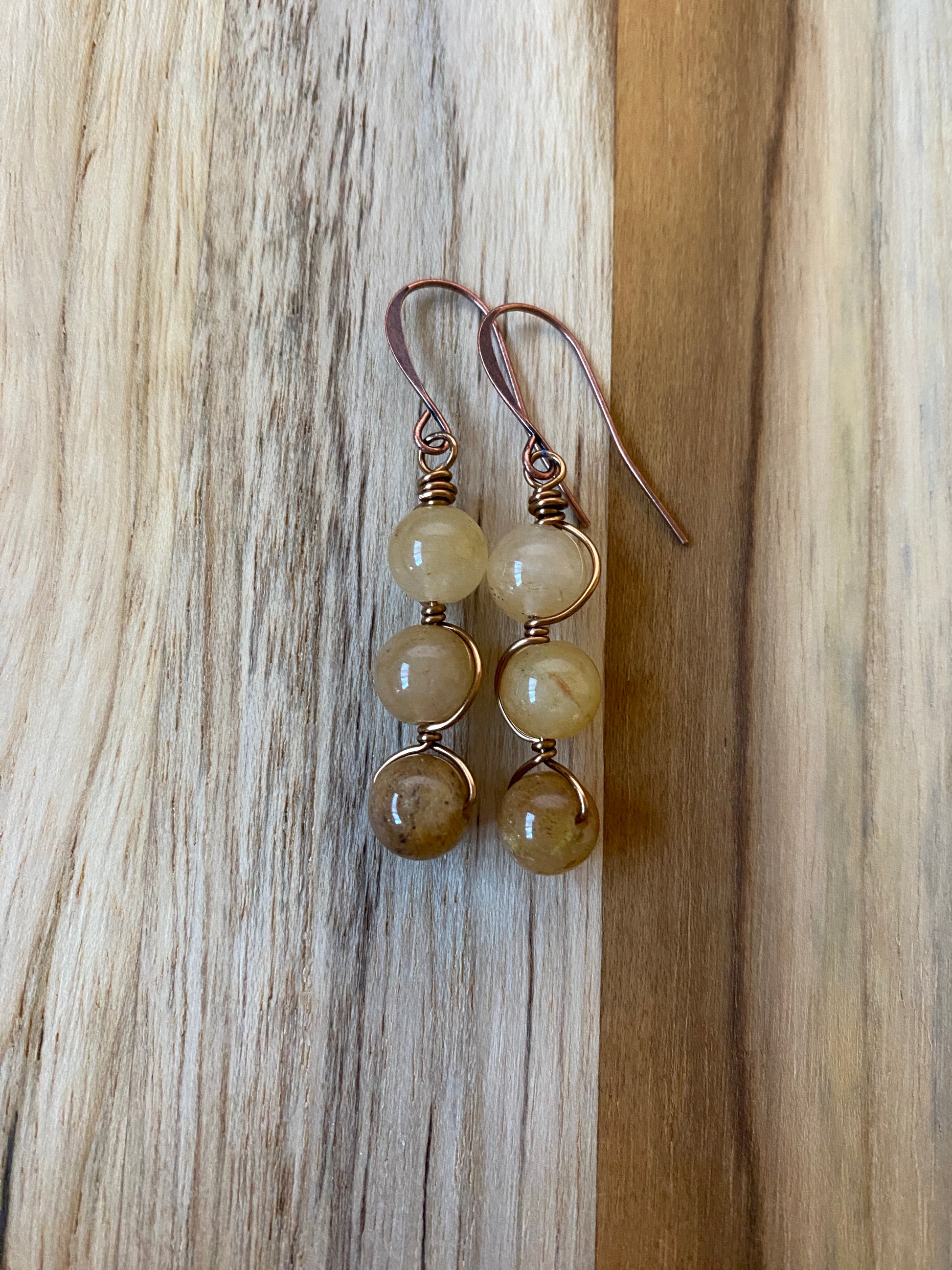 Aventurine and Copper Wire Wrapped Dangle Earrings