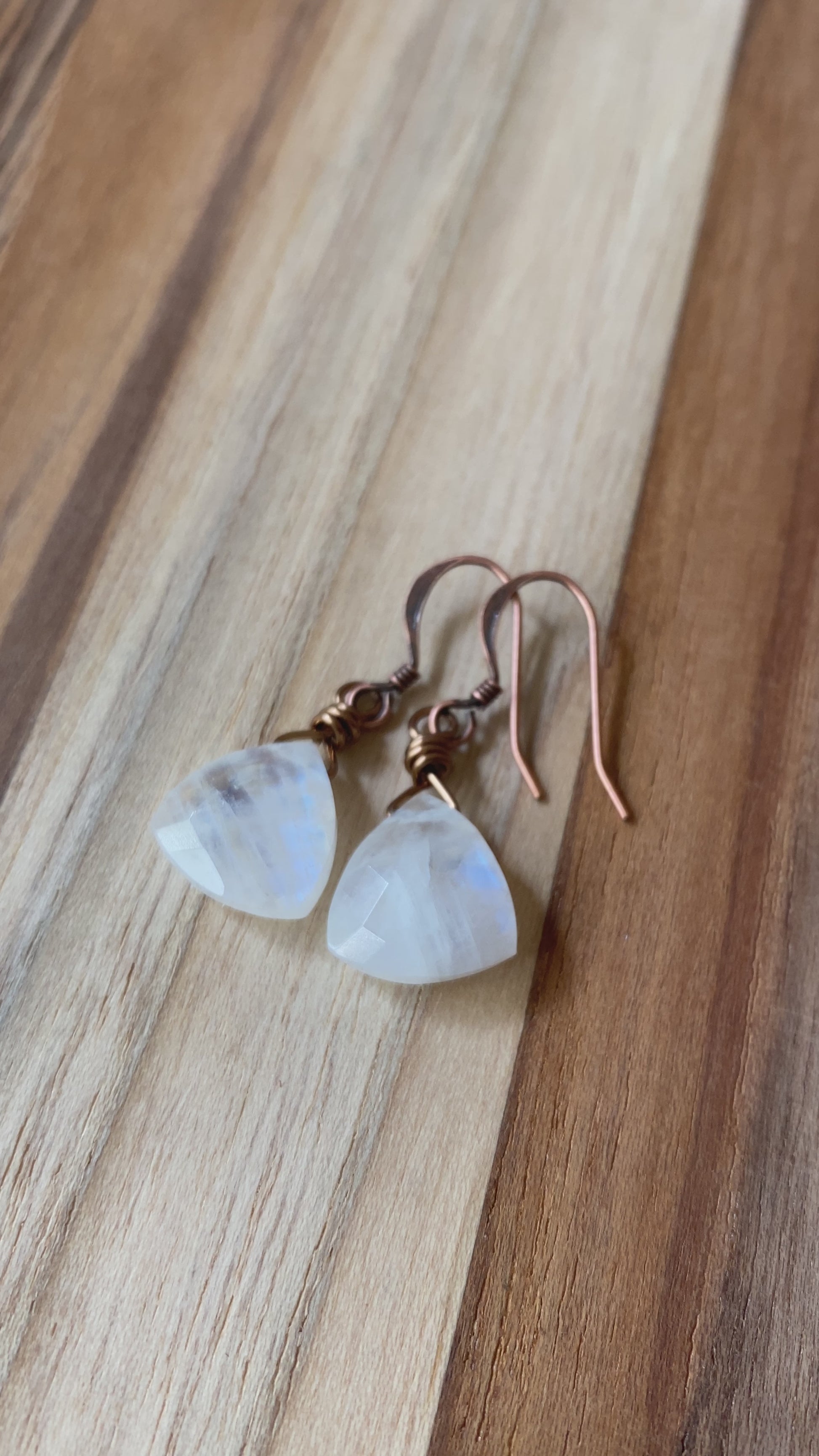 Rainbow Moonstone Dainty Dangle Earrings with Copper