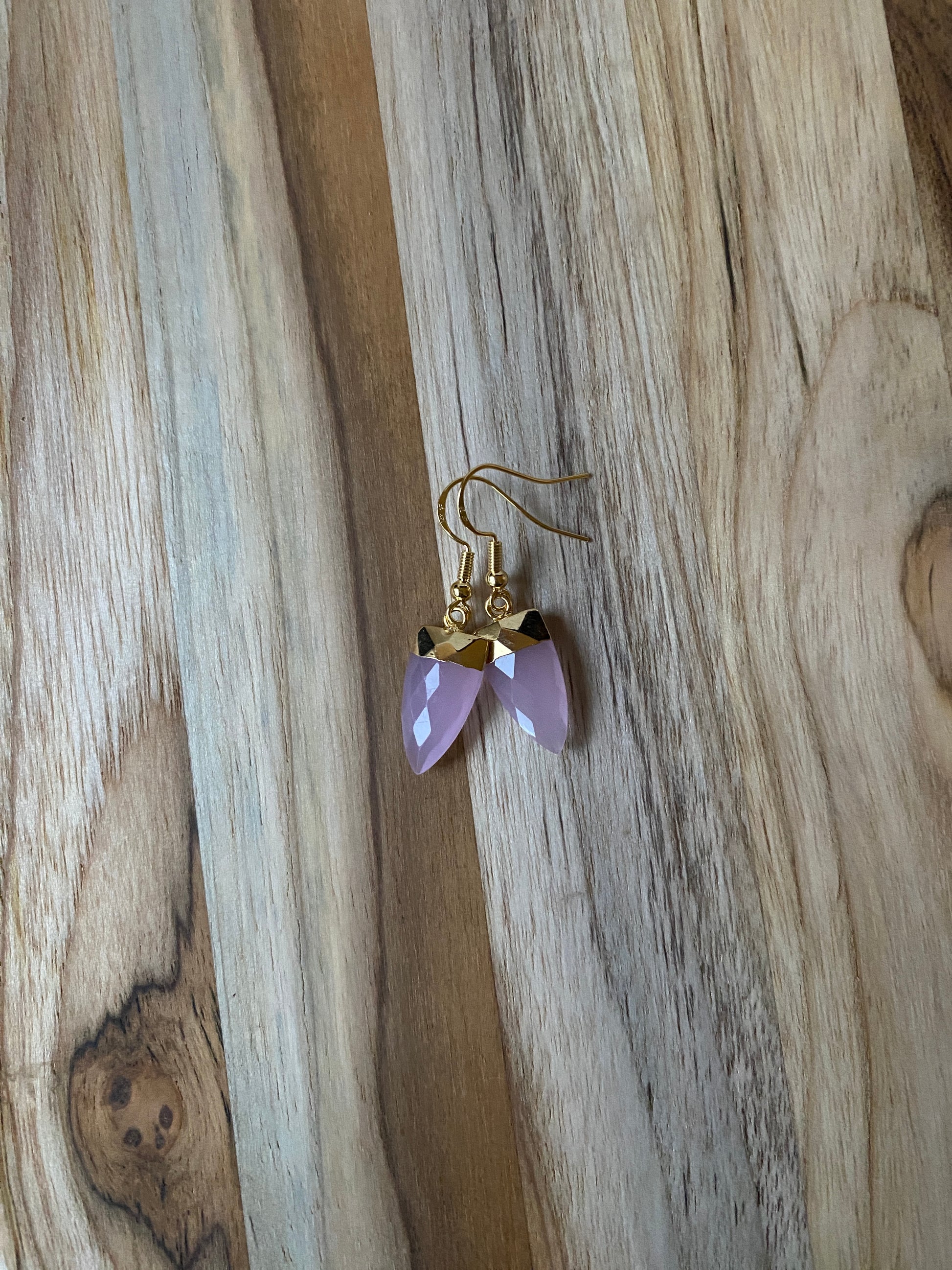 Pale pink rose chalcedony dangle earrings with 22k gold electroplating.